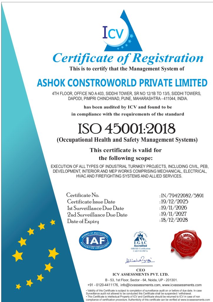 - Management ensures safe construction practices and environment friendly working culture on all project sites.